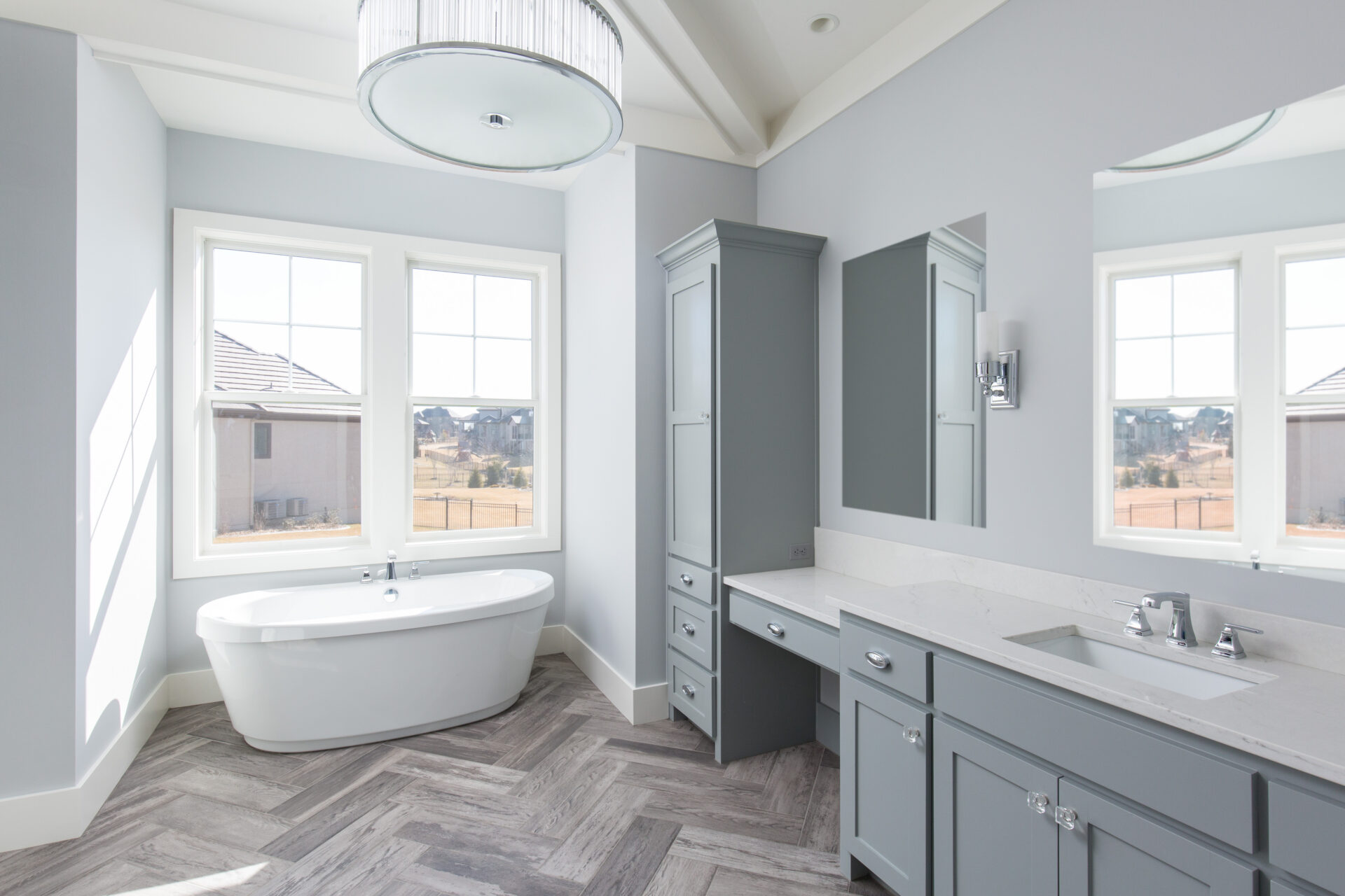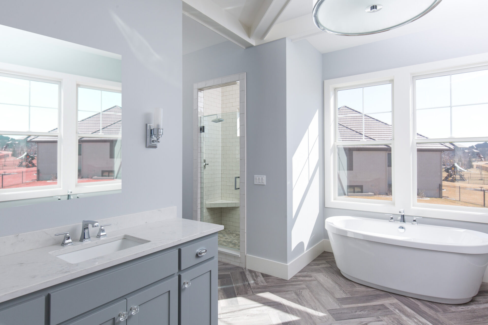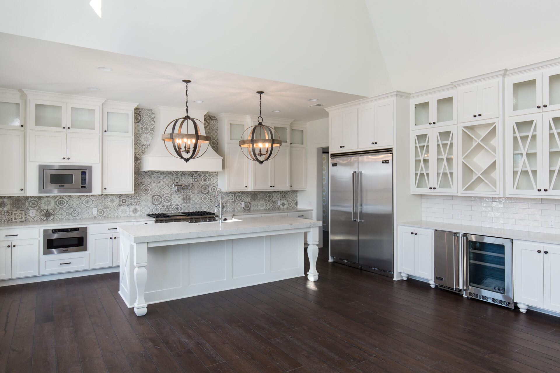 Vaulted ceilings, exposed beams, and expansive windows fill the home with natural light, while warm hardwood floors and custom details bring comfort and character throughout. The Grand Landing Residence blends timeless craftsmanship with open, inviting living spaces designed for everyday life.