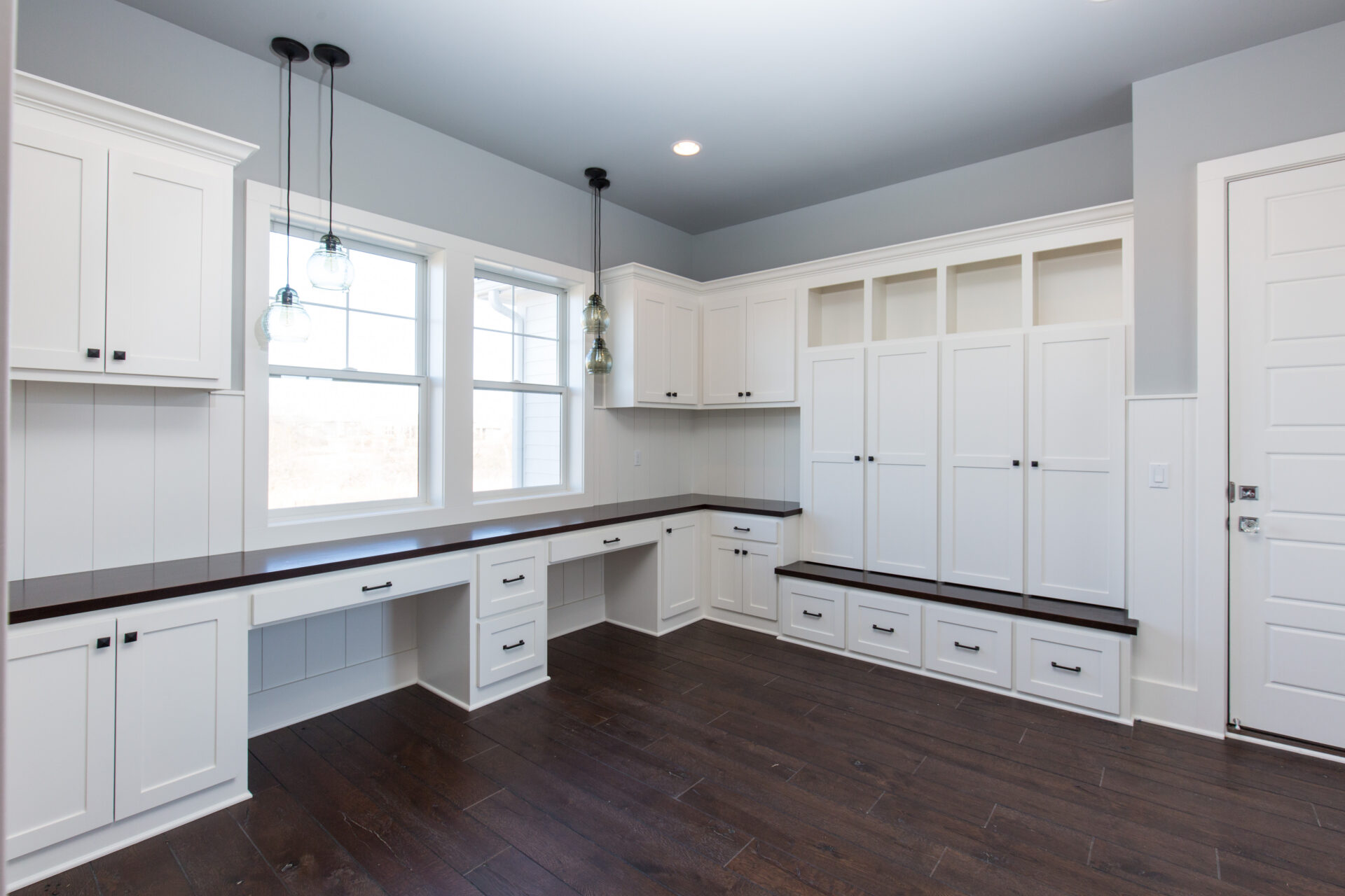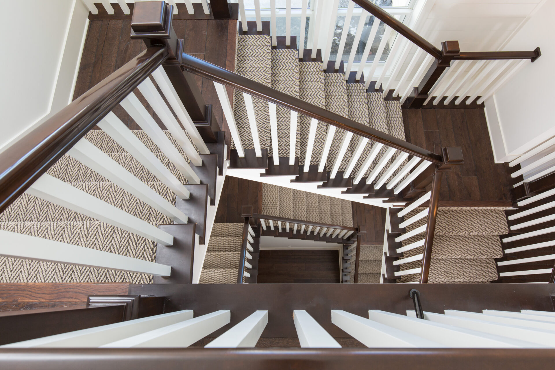 The centerpiece of this home is a dramatic multi-level staircase that creates a stunning architectural focal point from the moment you enter. Rich wood tones, crisp white balusters, and cascading landings add depth and elegance to the space.